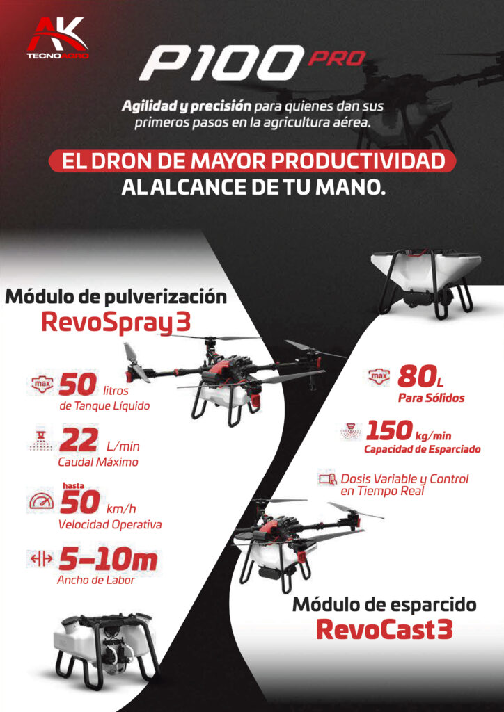 Ancho de cobertura de pulverización ~ 5-10 m en condiciones estándar.